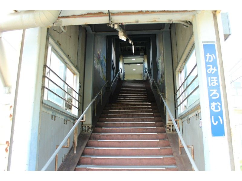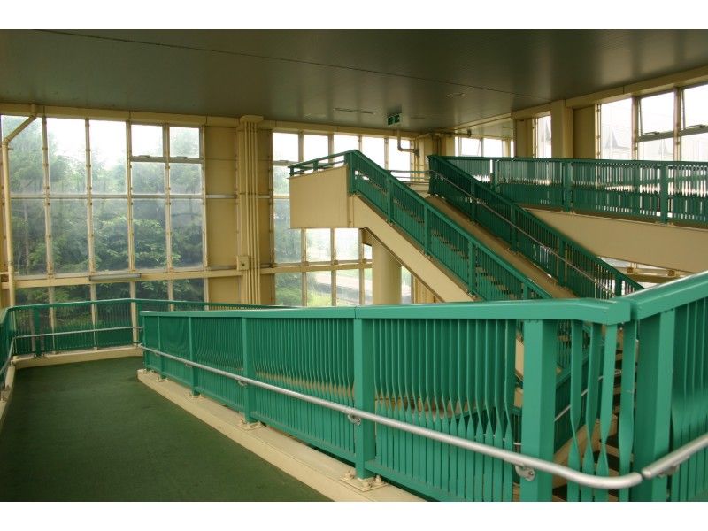 そんなに大きな駅ではありませんが、屋内スロープが線路の両側、国道の向こうの3ヶ所にあります。確かにエレベーターをつけるよりスロープのほうが安いだろうし、スロープなら屋内に設けたほうが実用的でしょう。しかし、いくらバリアフリーといっても本当にここまで大げさな施設を作らなければならないものなのでしょうか、考えさせられる駅です。