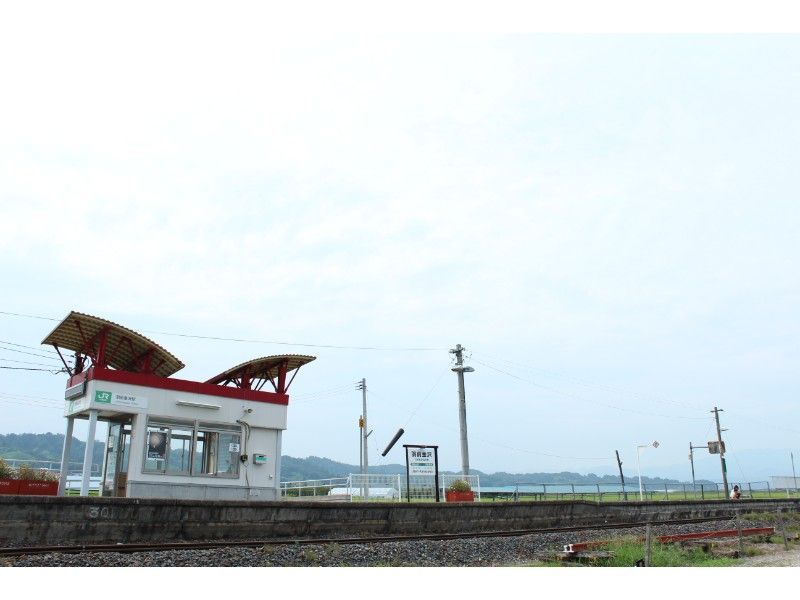 駅舎の天井に丸い赤い屋根が2枚付けられています。この形は何を意味するのでしょうか。鳥の翼をイメージしたものだそうです。「四季ごとに変化する周囲の風景にアクセントを添えるものになっています」と地元・中山町の広報誌にありました。