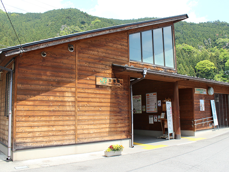 片流れの屋根を持つ木造駅舎です。コミュニティセンターを併設しています。
