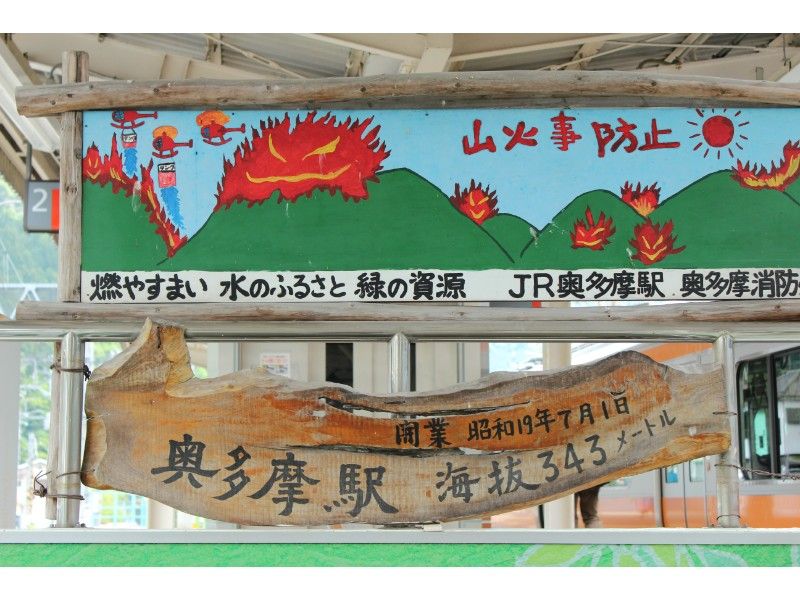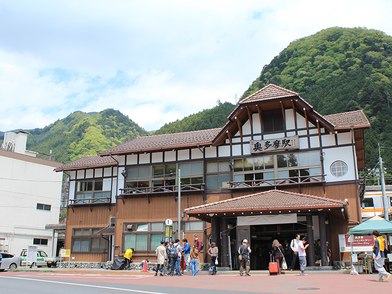 青梅線の終着駅で、東京都内で最も西に所在する駅です。標高は東京タワー(海抜高351 m)よりも8 m低い343 mで、東京都内にある鉄道駅の中で最も高い所にあります。