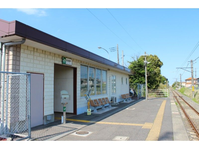 コミュニティ施設の併設された木造駅舎です。小さいながら駅前広場も整備されています。