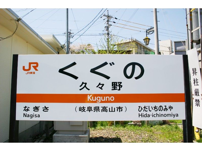 久々野駅は高山線で最も海抜の高い駅で676メートルです。駅舎前に「高山線で一番海抜の高い久々野駅」側面に「標高六七六米」と木柱が立っていました。
