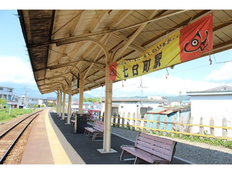 レトロ感のあるハイカラな洋館風の木造駅舎です。「なのかまち」と読んでしまいそうですが、「なぬかまち」です。地名は「なのかまち」駅名は「なぬかまち」です。