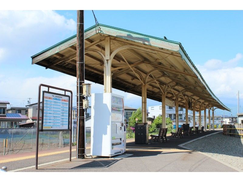 駅前は小さなロータリーが整備されています。無人駅ですが、駅舎内には「駅Cafe」という店舗があり、会津の特産品販売やギャラリー、観光案内、喫茶店等を備えたアンテナショップになっています。