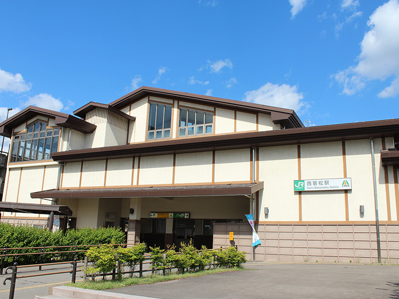 鶴ヶ城最寄駅らしく、鶴ヶ城を模したデザインの橋上駅舎です。駅の東西を結ぶ自由通路も併設されています。