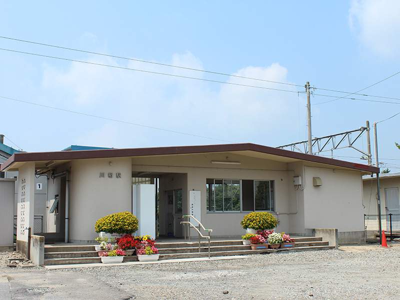 駅舎のある線路東側には比較的大きな集落が形成されていますが、駅前に店舗が少ないせいか、賑やかさはありません。また、線路を挟んだ駅西側は広大な田園地帯になっており、駅の東西で対比をなす景観が印象的です。