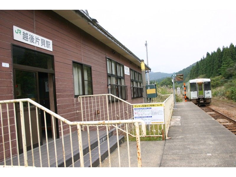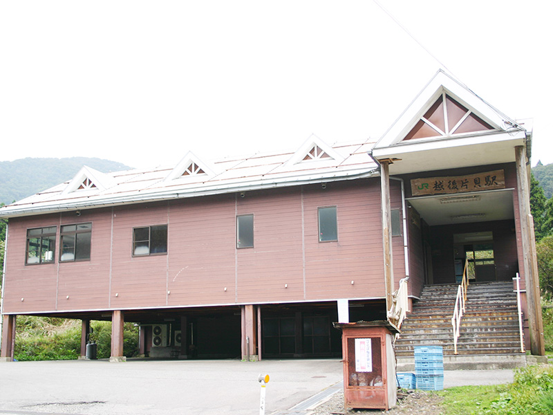 「九ヶ谷ふるさと館」というコミュニティ施設を併設した大きな駅舎です。積雪地帯のためか高床式の構造となっています。