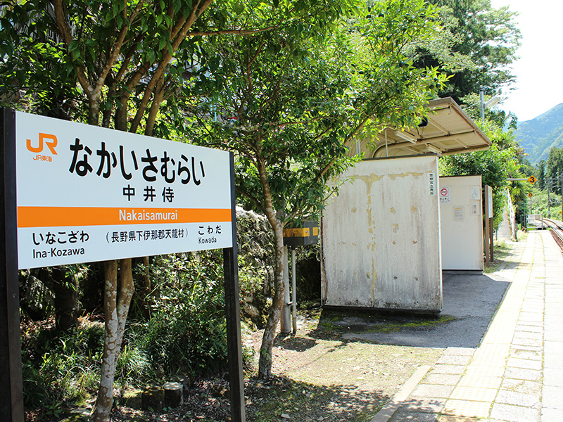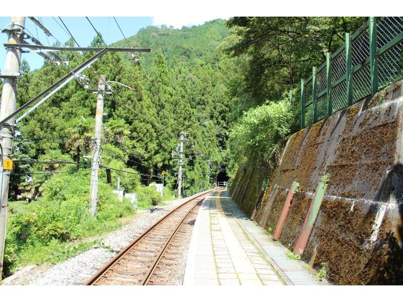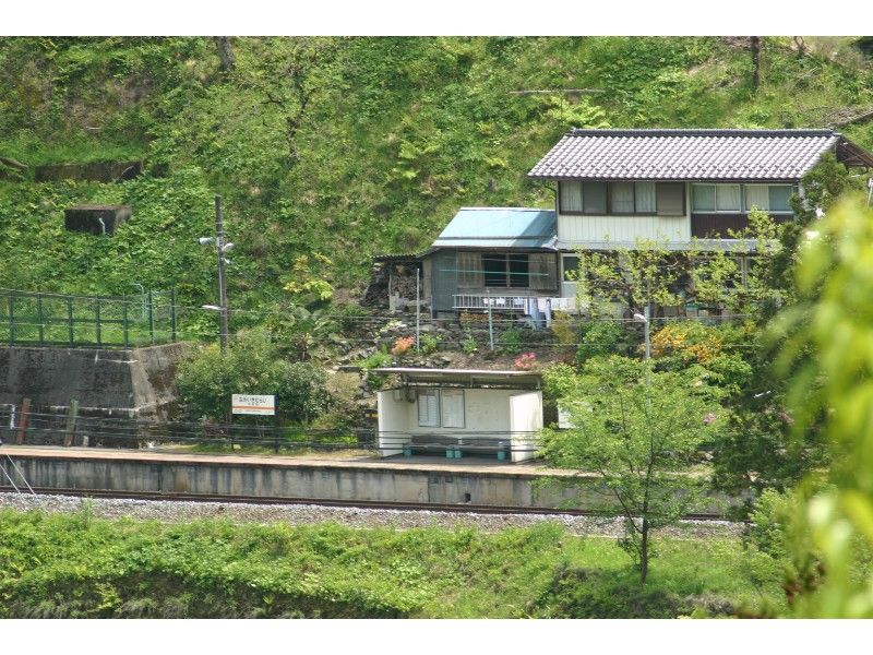 急傾斜地に位置し、ホームには切り立った斜面があり、コンクリートで被覆されています。駅前には民家が2軒あり、坂道を徒歩3~5分ほど登っていくと民家が連続する集落に出ます。駅前眼下に茶畑が広がり、例年、ゴールデンウイーク中に茶摘みが開始し、報道されることが多いようです。