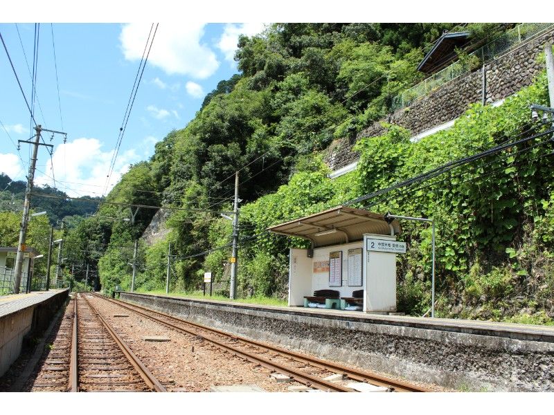 駅舎はなく、ホームに待合所が設置されています。ホームにはスロープで連絡します。