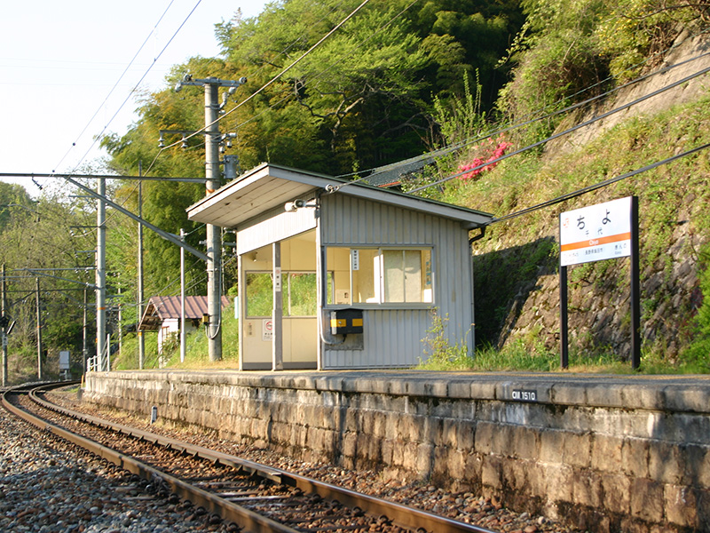 駅から天竜川沿いに降りて行くと、時折天竜ライン下りの舟が通り過ぎていくのみの静かな駅です。千代駅と言えば駅名の縁起の良さからテレビ番組の話題になったり、小和田駅の雅子様御成婚ブームの時には「小和田から千代ゆき」の硬券乗車券が発売されるなど話題には事欠きません。駅周辺はかなりの傾斜地で、集落まではひたすらの上り勾配が続きます。