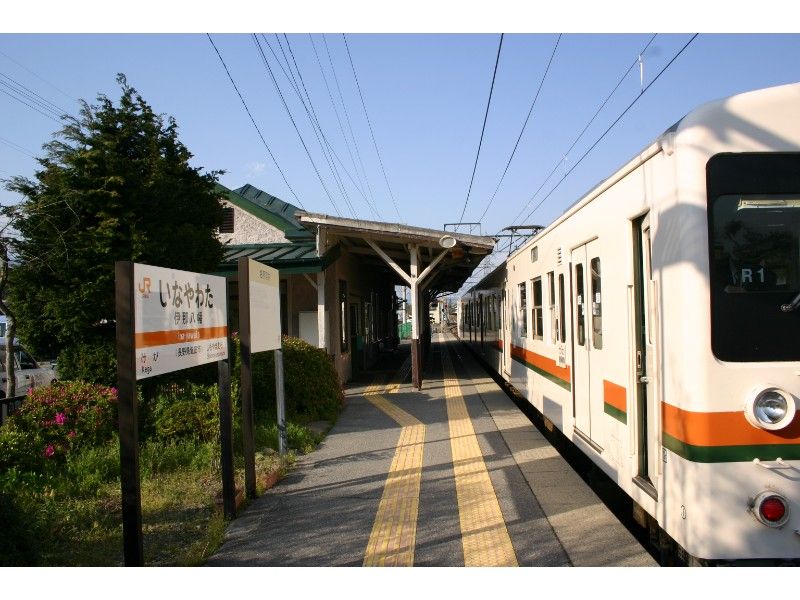 駅名の由来となった鳩ヶ嶺八幡宮は駅より徒歩5分ほどの場所にあり、門前には古くからの民家が点在しています。また一般には天竜舟下りの弁天港への下車駅として知られていますが、弁天港までは徒歩では距離があり過ぎ、駅前からのタクシー利用が一般的と言えます。
