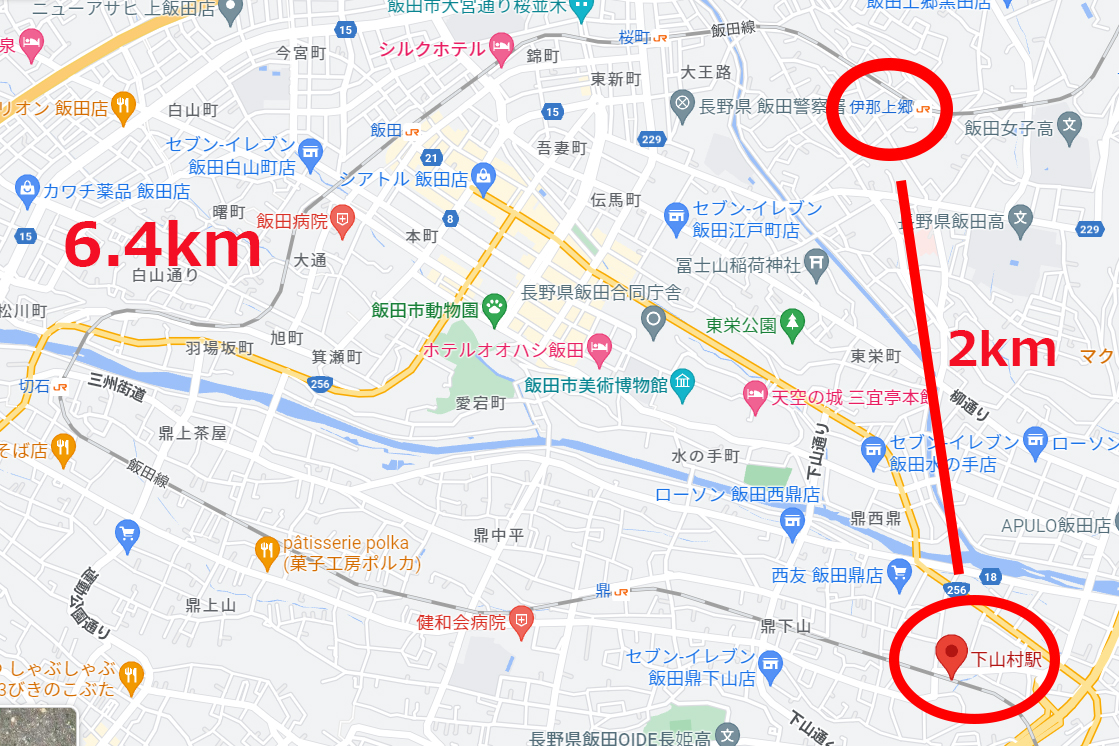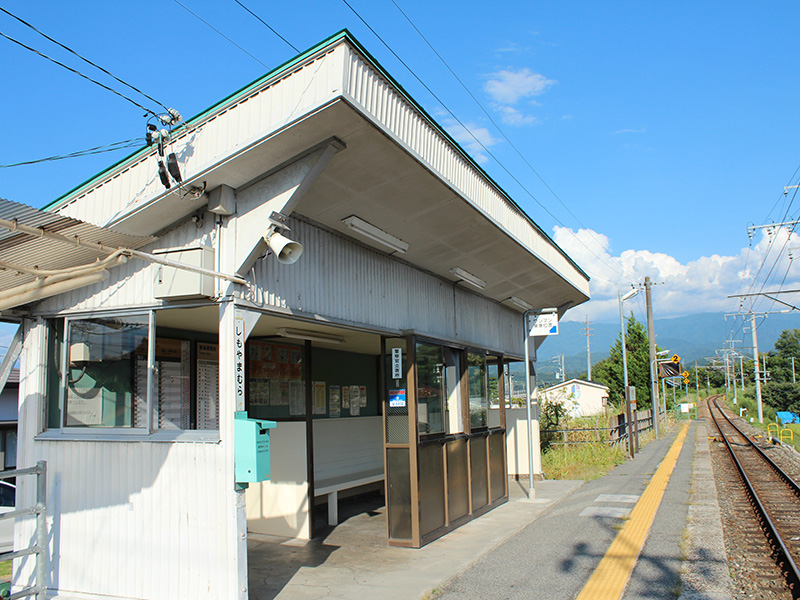 駅舎はなく、ホームに待合所が設置されているごく、普通の駅ですが、当駅から5駅先の伊那上郷駅までは直線距離で2kmのところ、6kmをかけて遠回りしており、脚力自慢の若者が列車と競争する「下山ダッシュ」はテレビ番組でも再三取り上げられています。